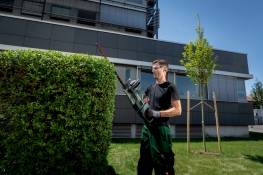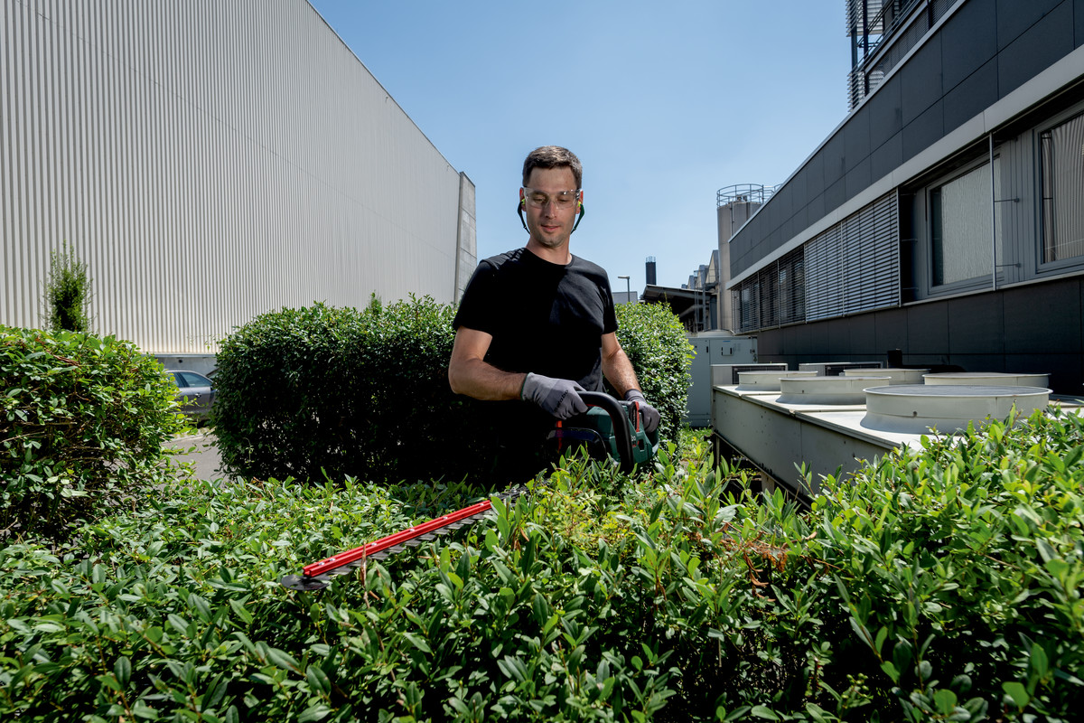 - Drehbarer Handgriff mit 5 Positionen für sicheres und flexibles Führen der Heckenschere