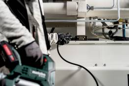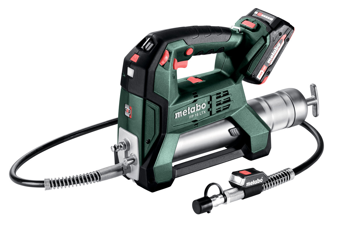 - Kompakte Akku-Fettpresse mit 2 Arbeitsstufen und hohem Auspressdruck (max. 690 bar) für die mobile Wartung von Maschinen und Anlagen