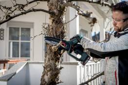• Handliche und sichere Akku-Gehölzsäge, ideal für den Rückschnitt von Bäumen und Sträuchern sowie für Grünschnittarbeiten