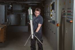 - Sekundenschnelles Aufstellen und Zusammenklappen des Baustrahlers
