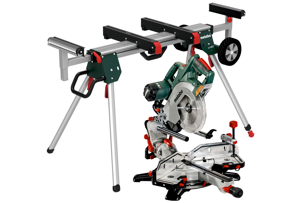 • Maximale Flexibilität beim Sägen durch beidseitig drehbaren Tisch und beidseitig neigbaren Sägekopf
