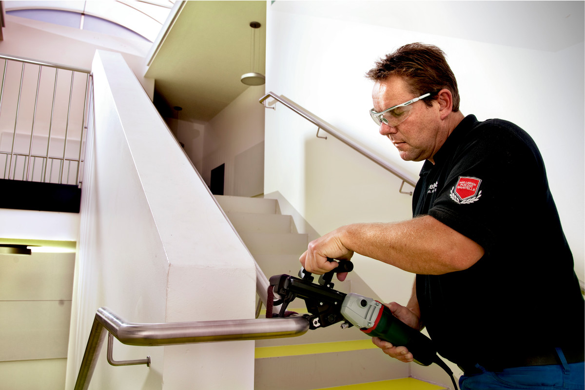 - Kompakter Rohrbandschleifer mit hohen Bandgeschwindigkeiten für die produktive Bearbeitung von Edelstahlrohren
