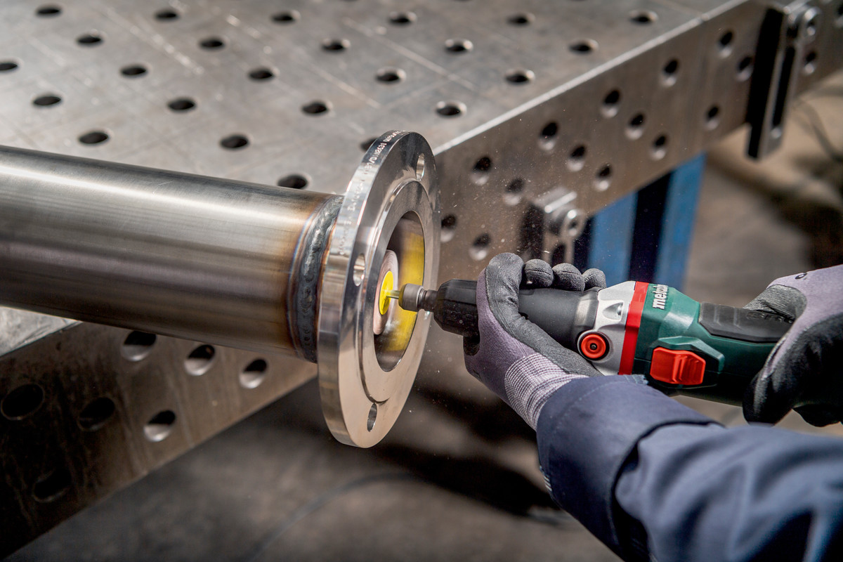 - Hohes Drehmoment auch bei niedrigen Drehzahlen, dadurch ideal zum Arbeiten mit Lamellenschleifrädern