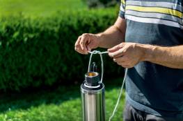 - Leistungsstarke, schlanke Tiefbrunnenpumpe zum Fördern von bis zu 6.200 Liter Klarwasser pro Stunde aus Brunnen und Schächten