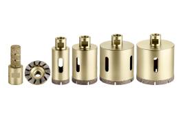 - Keine Extrakühlung erforderlich. Ø 6-14 mm haben zudem eine integrierte Paraffinemulsion zur besseren Kühlung. Bei aufeinanderfolgenden Bohrungen wird empfohlen die Krone nach jeder Bohrung kurz mit Wasser zu kühlen!