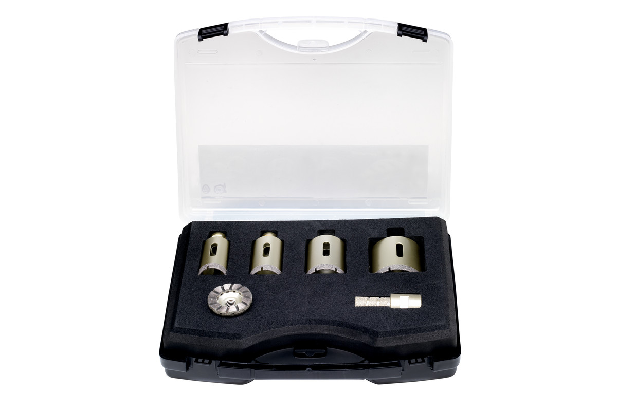 - Set bestehend aus: je 1 x Ø 35 mm, 40 mm, 50 mm, 68 mm + Diamantfräsfinger 20 mm + Diamantschleiftopf 50 mm