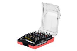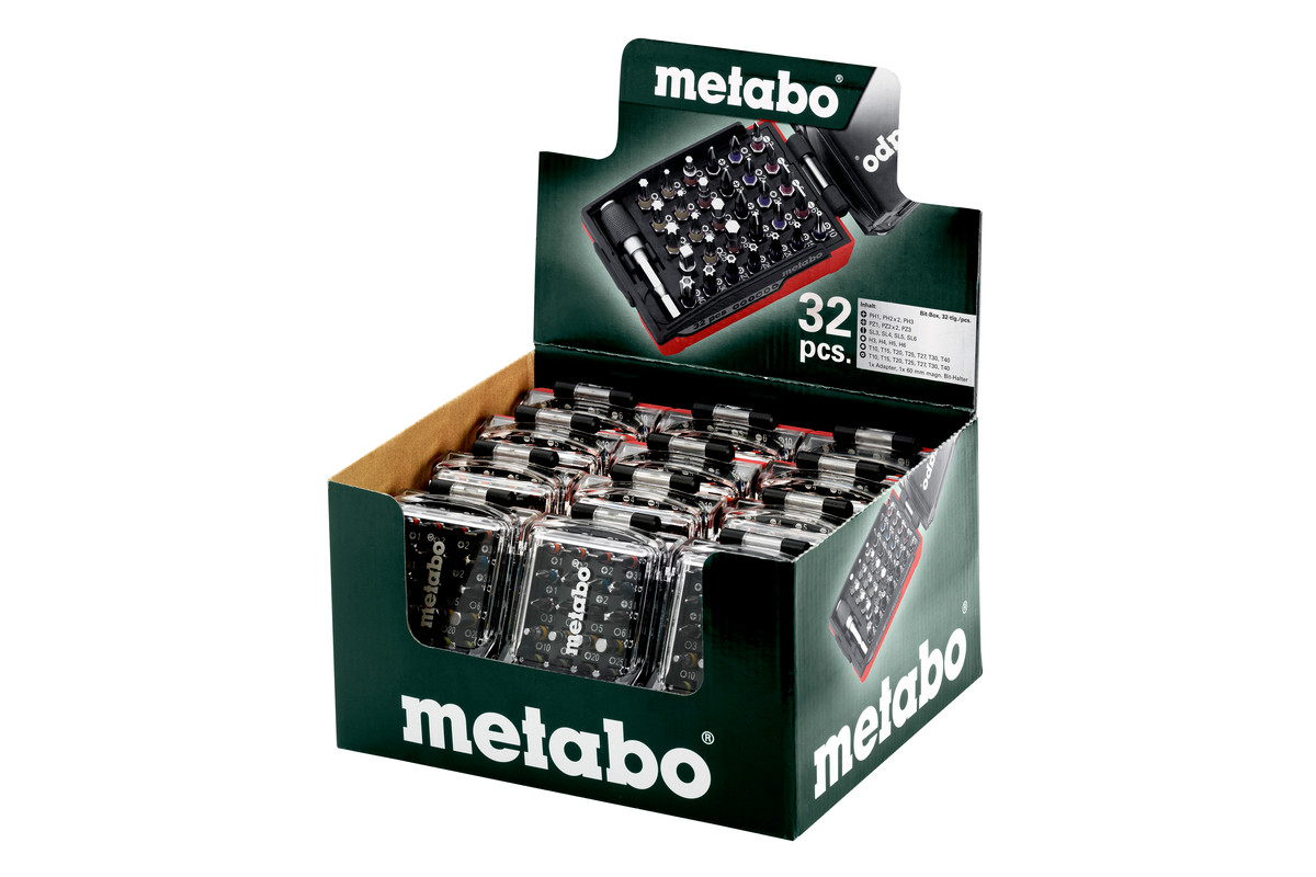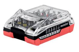 • Bits aus Chrom-Vanadium-Stahl (S2-Qualität); Bits mit Farbcodierung: für ein schnelles und einfaches Auffinden des passenden Bits; Magnetischer Schnellwechseladapter; Mit Adapter für Steckschlüsseleinsätze (Stecknussadapter); Hochwertige, robuste Box im speziellen Metabo-LiHD Akku-Design