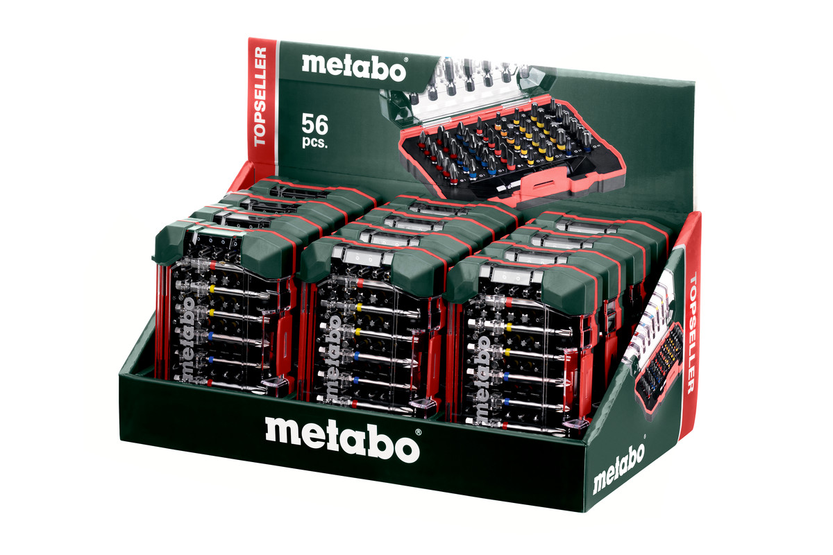 - Bits aus Chrom-Vanadium-Stahl (S2-Qualität); Bits mit Farbcodierung: für ein schnelles und einfaches Auffinden des passenden Bits; Magnetischer Schnellwechseladapter; Hochwertige, robuste Box im speziellen Metabo-Design mit ausziehbarem Euroloch-Aufhänger