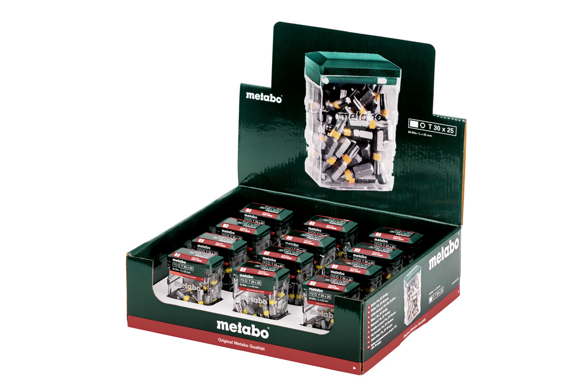 • Bits aus Chrom-Vanadium-Stahl (S2-Qualität); Bits mit Farbcodierung; Hochwertige, robuste Box im speziellen Metabo-Design, mit Euroloch-Aufhänger