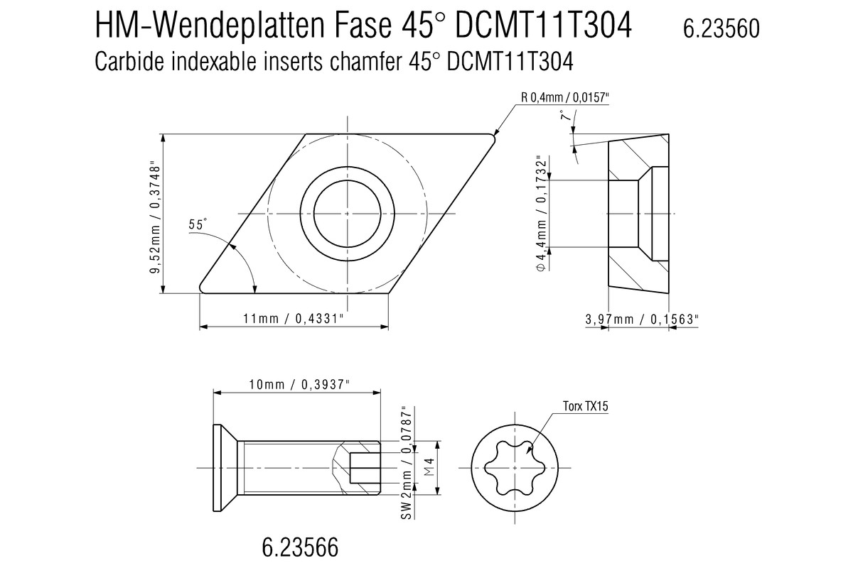 10 HM-Wendeplatten Fase 45°, ISO DCMT 11 T 304 (623560000)