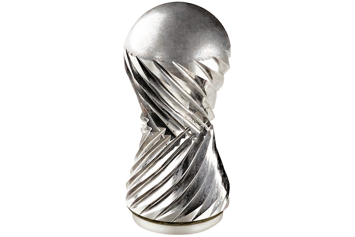 - Einzigartiger Radiusfräser mit spezieller Kurvenstruktur. Das speziell entwickelte Führungssystem verhindert ein Abrutschen vom Werkstück. Dadurch ideal geeignet für feine Radien auf scharfen Ecken/ Kanten und gute Kontrolle über scharfe Ecken. Durch die spezielle Nutengeometrie (überschneidende Standardverzahnung im Fräsermittelpunkt) erreicht man ein feines Fräsen auf allen Oberflächen und hohe Zerspanungsleistung bei hoher Standzeit. Die glatte Stirnseite hilft beim Führen des Fräsers und schützt vor Schäden auf der Oberfläche. Speziell entwickelt zum Herstellen von Radiusfasen bei harten Werkstoffen wie Stahl, Edelstahl, Gusseisen, Titan, Bronze, Kupfer, Messing usw.