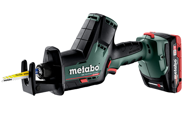 Nürtingen, Februar 2020: Ob Arbeiten an engen Stellen oder kraftvolle Schnitte in harte Materialien – für beides hat Metabo neue 18-Volt-Akku-Säbelsägen im Programm. Bei Arbeiten in besonders schwer zugänglichen Bereichen ist die kleine SSE 18 LTX BL Compact die richtige Wahl. Die vielseitige Säge überzeugt mit ihrer kompakten Bauform und ihrem bürstenlosen Motor. Noch mehr Sägeleistung liefert die SSE 18 LTX BL. Mit einer Hublänge von 32 Millimetern und ihrem Brushless-Motor punktet die Säge mit Kraft und Ausdauer. „Beide Sägen sind sehr leistungsstark und gleichzeitig echte Leichtgewichte. Dafür sorgt unter anderem ihr bürstenloser Motor“, erklärt Produktmanager Leonard Sautter. „Denn im Vergleich zu Modellen mit Bürstenmotoren arbeiten die Anwender mit den neuen 18-Volt-Modellen jetzt noch schneller und schaffen pro Akkuladung mehr Schnitte“, so Sautter.