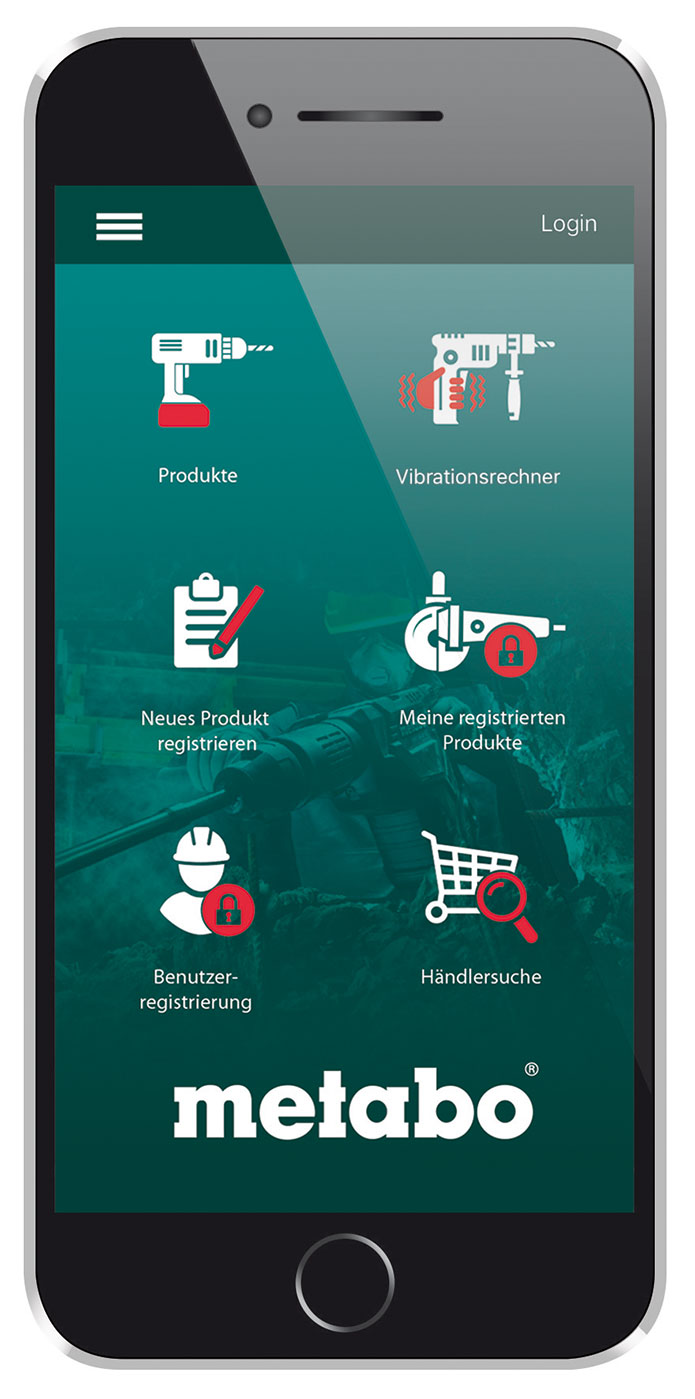 Einfacher geht es nicht: Mit der neuen Metabo App können Handwerker und Händler ihre Maschinen schnell registrieren, erhalten so die erweiterte Garantie von drei Jahren und haben alle Informationen jederzeit im Blick. Ein integrierter Vibrationsrechner zeigt zudem an, wie lange Anwender mit einer Maschine arbeiten können, ohne dabei gesundheitliche Risiken einzugehen.