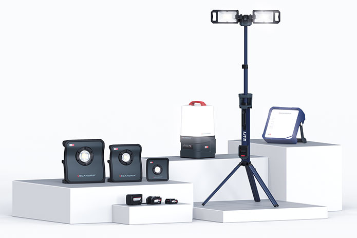 Die sechs neuen Arbeitsleuchten von SCANGRIP eignen sich also für die unterschiedlichsten Anwendungen und verfügen dabei über eine besonders hohe Leuchtkraft. Der neue LED-Baustrahler NOVA 2 CAS erzielt bis zu 2.000 Lumen, ist besonders kompakt und lässt sich durch einen Tragegriff einfach transportieren. Jeweils bis zu 4.000 und 10.000 Lumen erreichen die beiden neuen Akku-Strahler NOVA 4 CAS und NOVA 10 CAS. Die Arbeitsleuchten sind besonders robust und damit auch für Einsätze unter härtesten Bedingungen bestens gerüstet: etwa bei Nässe, Kälte oder Staub. Als echtes Leichtgewicht lässt sich der dritte Baustrahler im Bunde, das Akku-Arbeitslicht AREA 10 CAS, komfortabel transportieren. Die Leuchte erzielt bis zu 10.000 Lumen. Professionelle Anwender können zwischen einem Abstrahlwinkel von 180 Grad oder 360 Grad wählen. So lassen sich sowohl der Arbeitsbereich sehr präzise, als auch der gesamte Raum vollständig ausleuchten. Teil der neuen SCANGRIP CAS Range ist außerdem das Akku-Flutlicht VEGA LITE 4 CAS. Der Strahler verfügt über ein robustes, wasserdichtes Kunststoffgehäuse, sein leistungsstarkes LED-Licht erzeugt ein blendfreies, gestreutes sowie angenehmes Arbeitslicht und eignet sich für Einsätze im Innen- und Außenbereich. Abgerundet wird die neue CAS Range durch den Akku-Strahler TOWER LITE CAS mit zwei um 360 Grad schwenkbaren Strahlern und einer maximalen Höhe von rund zwei Metern. Der TOWER LITE CAS lässt sich mitsamt Dreifußständer schnell und einfach zusammenklappen und kann so überall hin mitgenommen werden.