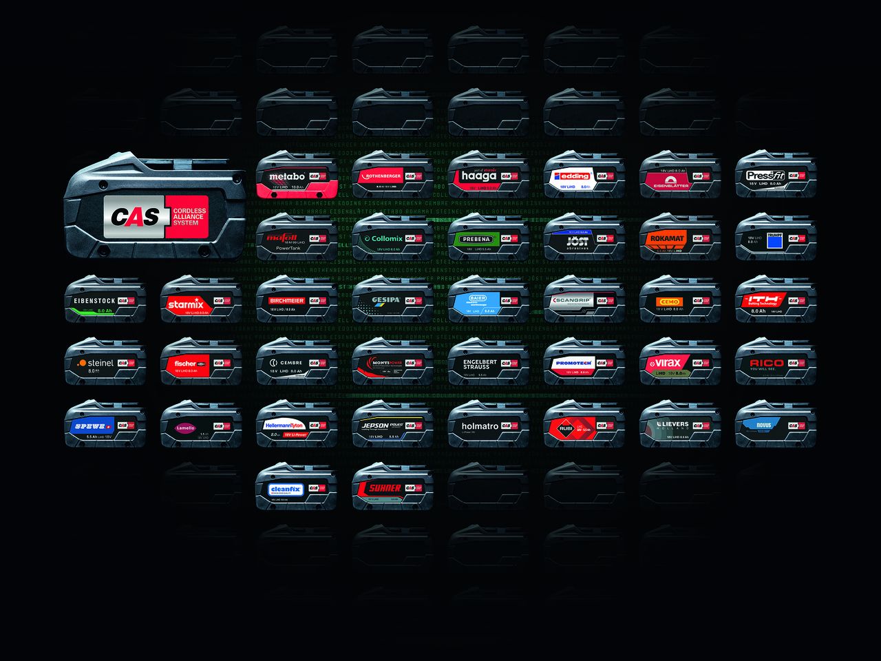 Metabo hat 2018 mit CAS (Cordless Alliance System) das erste markenübergreifende Akku-System im Markt eingeführt. Aktuell sind bereits mehr als 30 Marken Teil von CAS, dazu zählen Elektrowerkzeug- und Maschinen-Herstellern aus verschiedenen Bereichen. Innerhalb des CAS Akku-Systems sind alle Maschinen der CAS Marken mit einem Akku zu hundert Prozent kompatibel und beliebig kombinierbar. Auf Basis der leistungsstarken Metabo Akku-Technologie versammelt CAS die unterschiedlichsten Gewerke unter einem Dach und bietet professionellen Anwendern so die Freiheit, fernab der Steckdose mit Standard- und Spezialprodukten verschiedener Hersteller mobil und flexibel zu arbeiten.